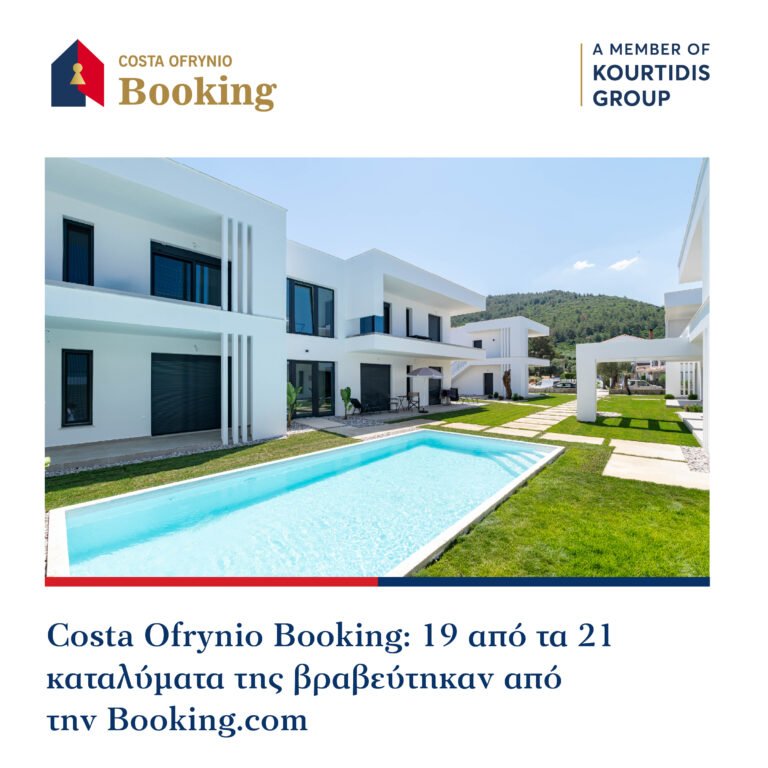 Η Costa Ofrynio Booking συνεχίζει να διαπρέπει στον χώρο της φιλοξενίας, σημειώνοντας φέτος ένα εντυπωσιακό επίτευγμα στα Traveller Review Awards της Booking.com. 19 από τα 21 καταλύματα της Costa Ofrynio Booking βραβεύτηκαν με πολύ υψηλές βαθμολογίες από τους επισκέπτες, επιβεβαιώνοντας για άλλη μια χρονιά τη δέσμευσή της στην υψηλή ποιότητα και την άριστη φιλοξενία.